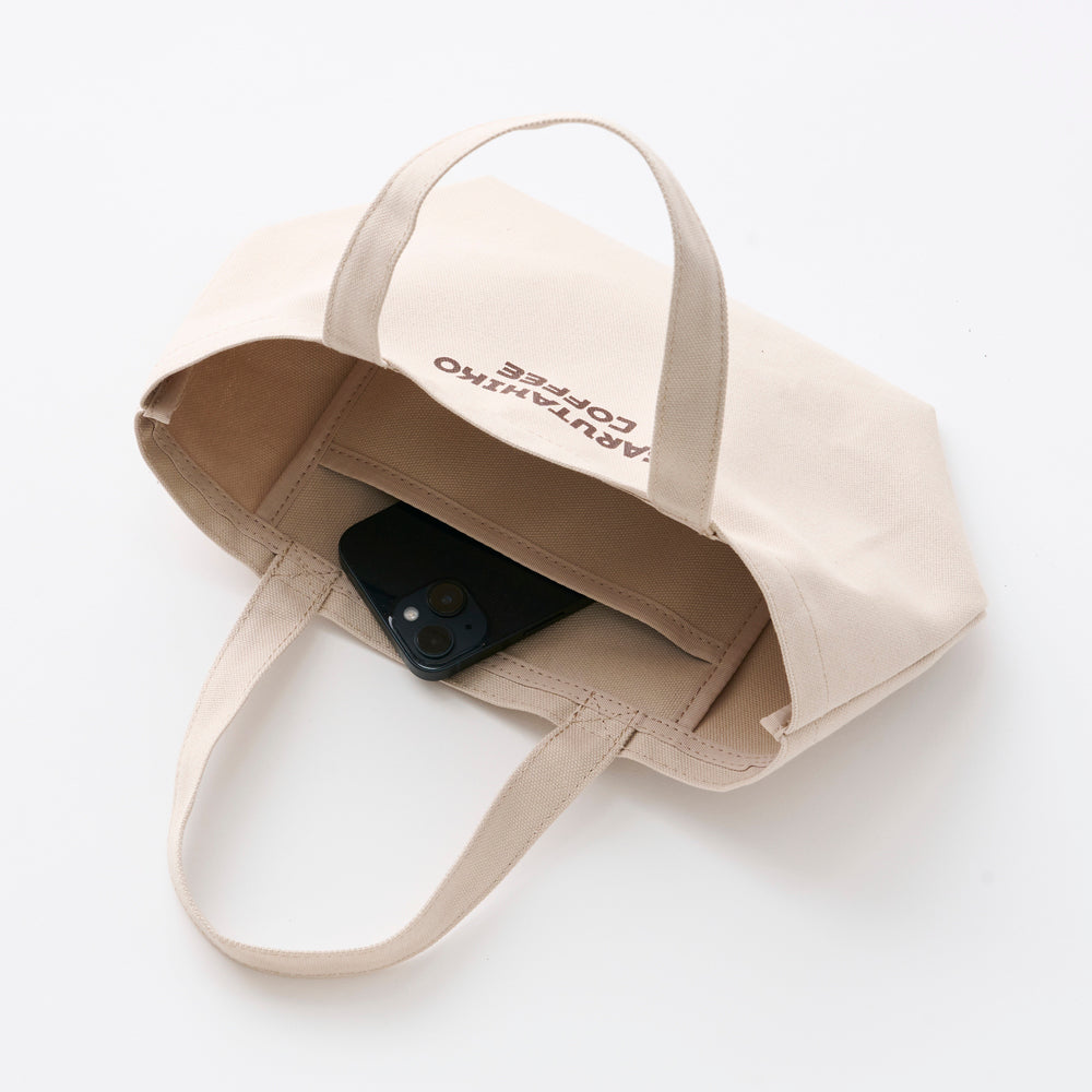 落ち着いたニュアンスカラーのバッグに、ロゴをワンポイントにしたシンプルなデザインです。厚地を使用し丁寧に縫製されているので形が崩れにくく丈夫に出来ています。お散歩やちょっとしたお出かけにぴったりのバッグです。