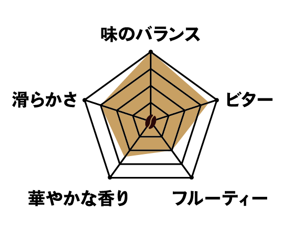いちじくを思わせるほのかな甘さと、 こっくりとしたダークチョコレートのような 心地良い苦味がバランスの良いブレンドです。